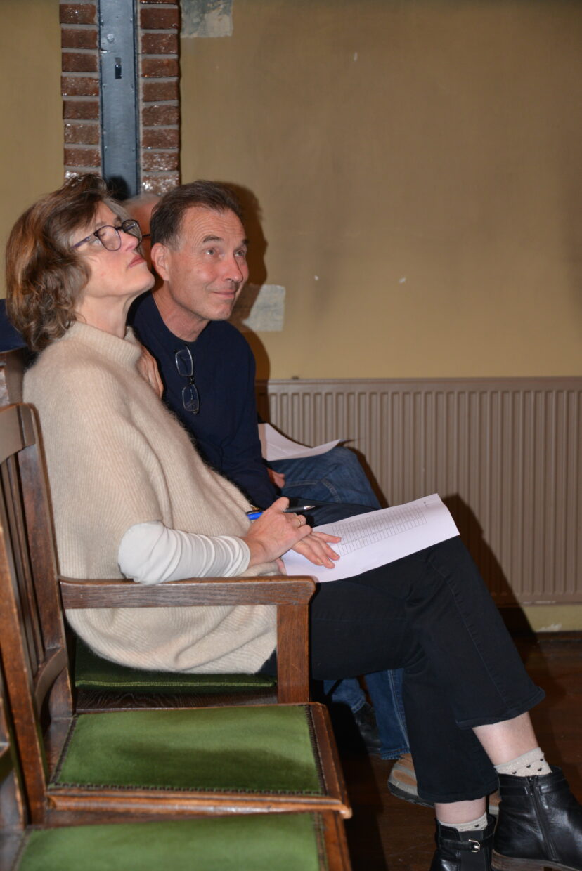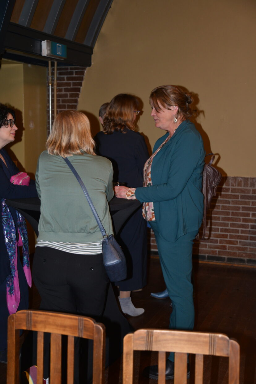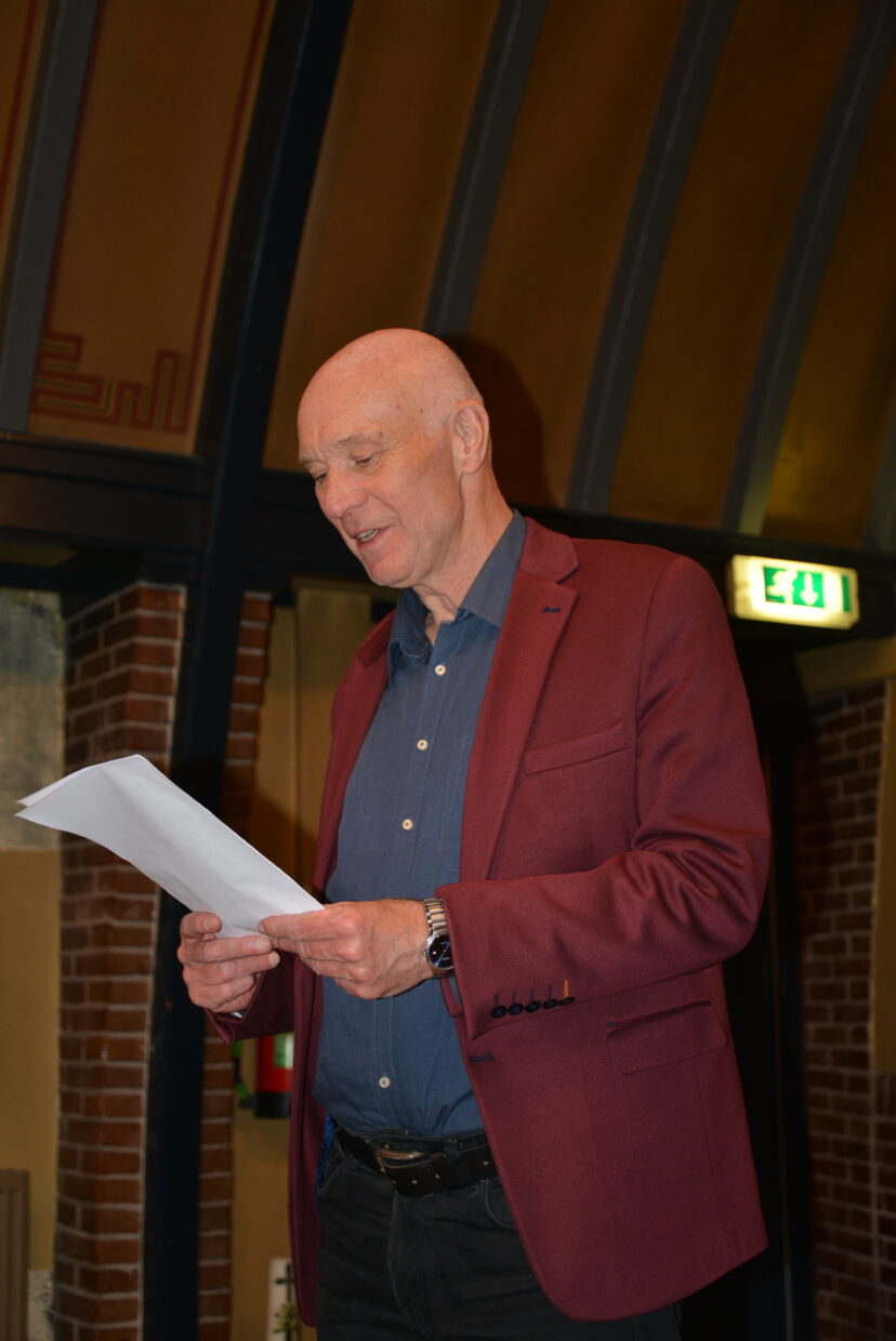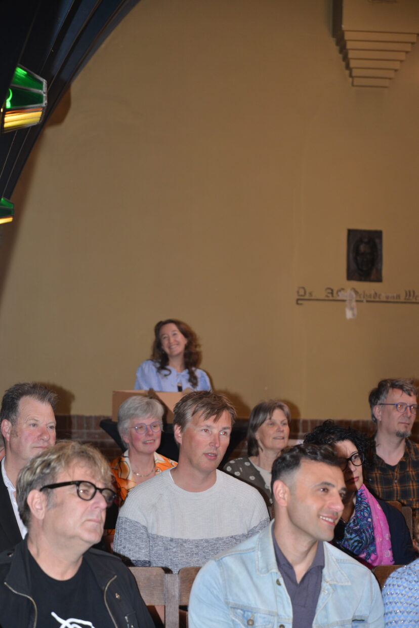 Vanaf acht uur druppelden de mensen binnen. Iedereen kon met een drankje in de hand plaatsnemen en kreeg een vel papier en een pen. In plaats van een keurig interview hadden Anton Scheepstra en ik namelijk gekozen voor een pubquiz over de trilogie en mijn schrijverschap. Dat deden we old school met pen en papier, want tja, in Leegland bestaat ook geen wifi. Het werd een leuke en hopelijk ook informatieve quiz, die Anton regelmatig even onderbrak voor inhoudelijke vragen aan mij. Zo kon ik vertellen over de totstandkoming van de boeken, mijn inspiratie en ook de manier waarop ik schrijf. En ondertussen moesten mensen allerlei lastige vragen beantwoorden over de beul van Leegland, de naam van Eva’s vader en het schip dat Senna kaapte in Zonderland.