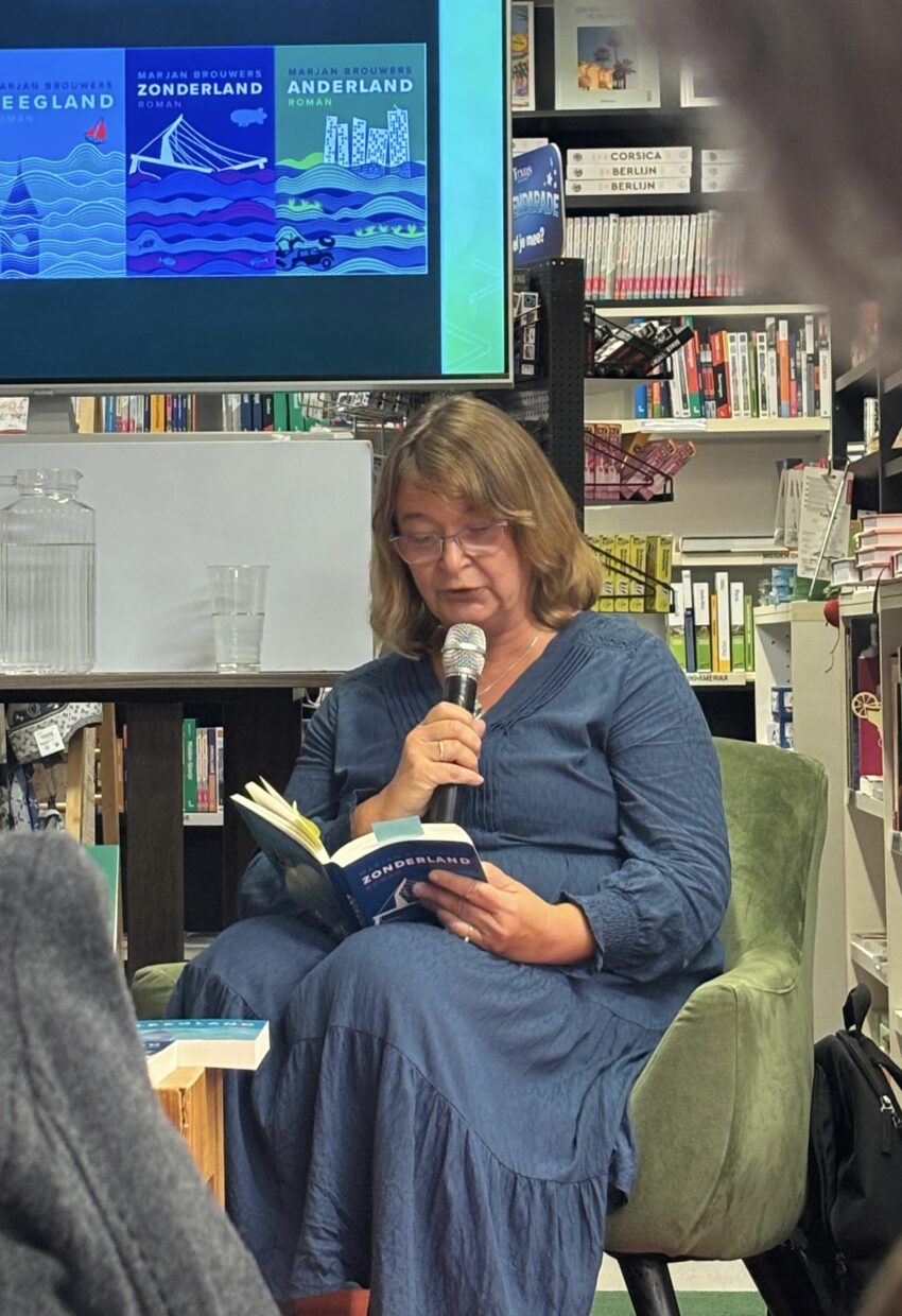 Tussendoor lazen we allebei voor: Elke uit McEwans boek en ik uit Zonderland. Hoezeer literatuur kan raken aan de realiteit werd glashelder toen ik een stukje voorlas over Senna in Kopenhagen. Tijdens het lezen besefte ik weer dat ook mijn verhalen soms eng actueel zijn. Ik heb het dan over deze passage waarin Senna op de Nederlandse Academie leert over de geschiedenis van haar land.