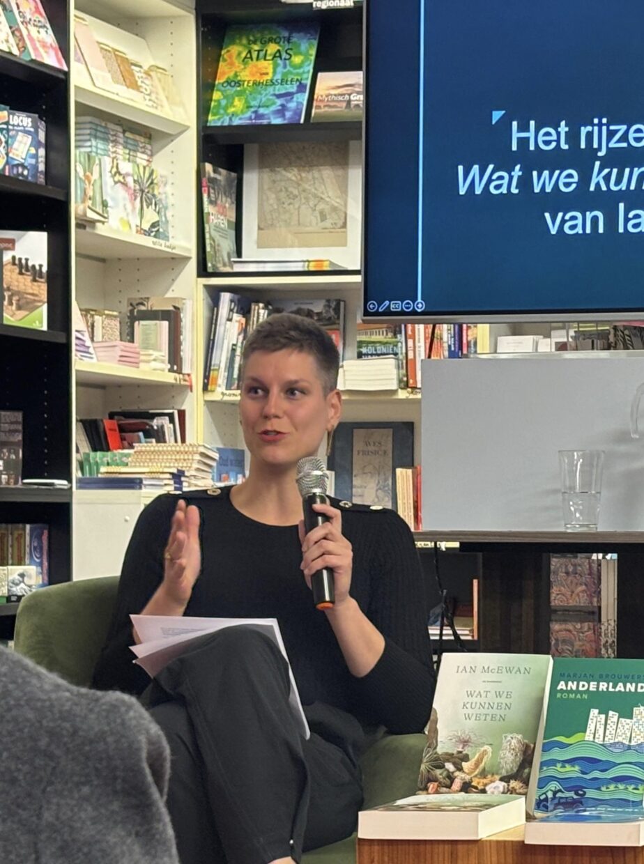 En zo raakten Elke en ik verzeild in een levendig gesprek over literatuur, geschiedenis, de kracht van kunst en de dreiging van klimaatverandering. Er kwamen mooie vragen uit het publiek en in de pauze gingen de gesprekken gewoon door, ook tijdens het signeren. Al met al was het een fantastische avond. Voor herhaling vatbaar, let dus goed op mijn aankondigingen op deze website en de social media!
