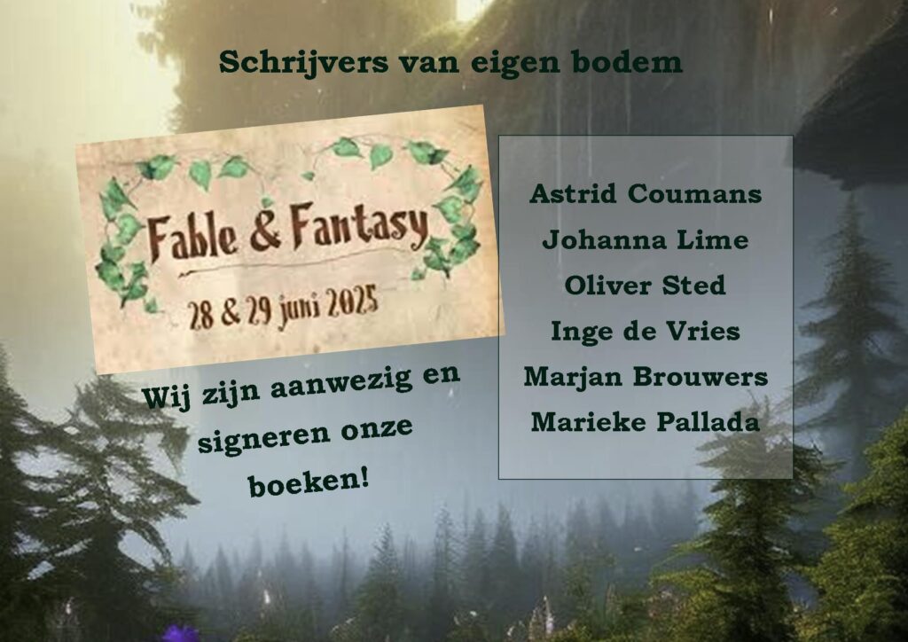 28 en 29 juni 2025 is het weer zover! We staan met zes schrijvers op het geweldige evenement Fable and Fantasy in Emmen. Maar wie zijn wij?