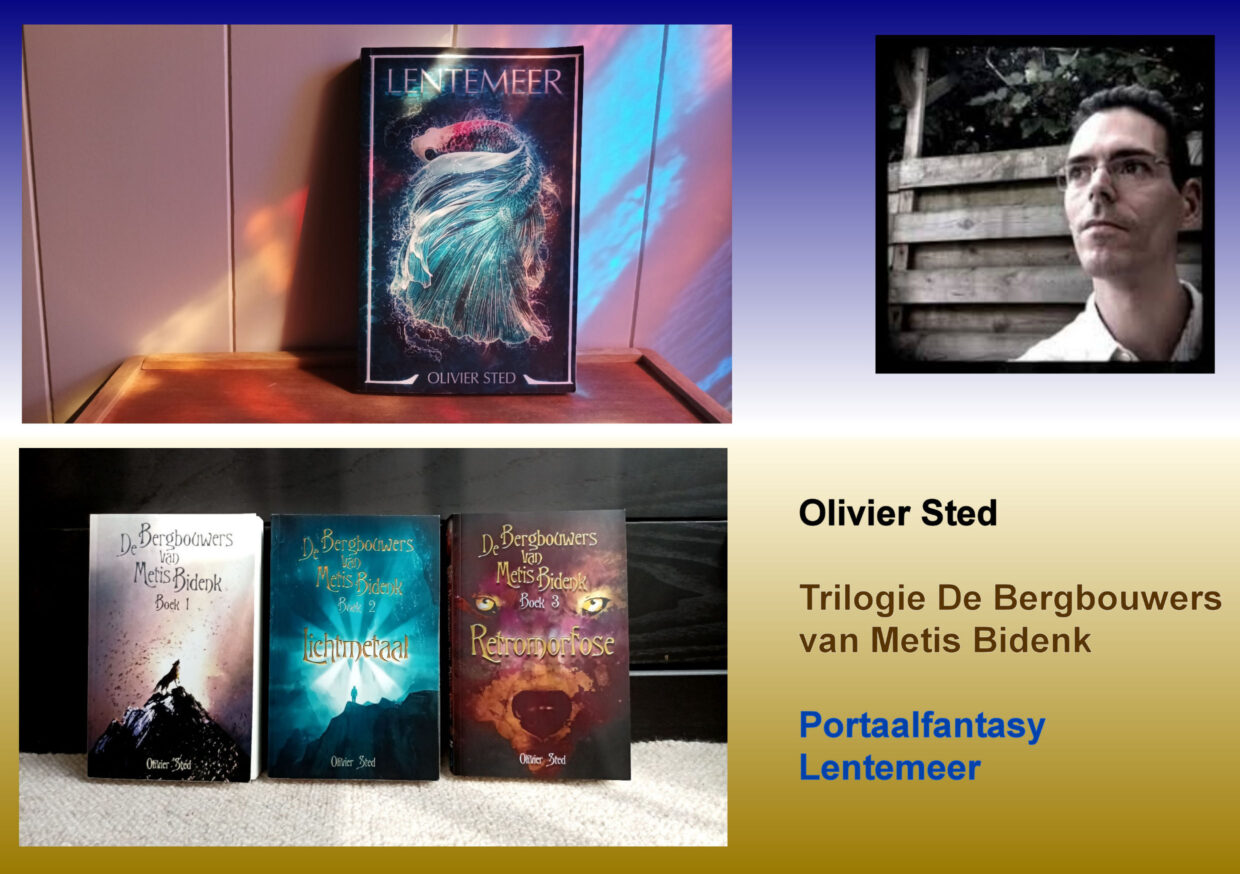 Olivier Sted is er ook bij! En hij heeft zijn allernieuwste boek Lentemeer mee. Dit fantasy-verhaal valt onder de portaal-fantasy. Uiteraard heeft hij ook zijn trilogie over de Bergbouwers mee.